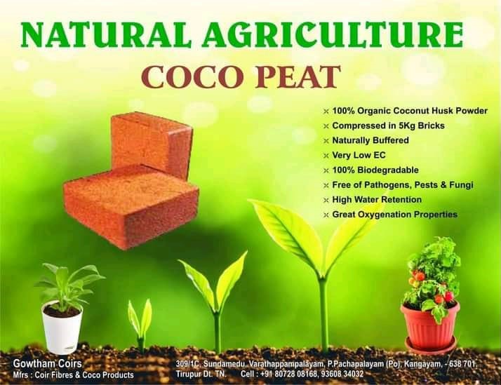 The coir pith is suitable for all types of garden plants, lawns, flowers, vegetables in pots or on the ground. This coco peat dried in the natural sun, are processed to produce different items namely Coco peat & coco peat briquettes.